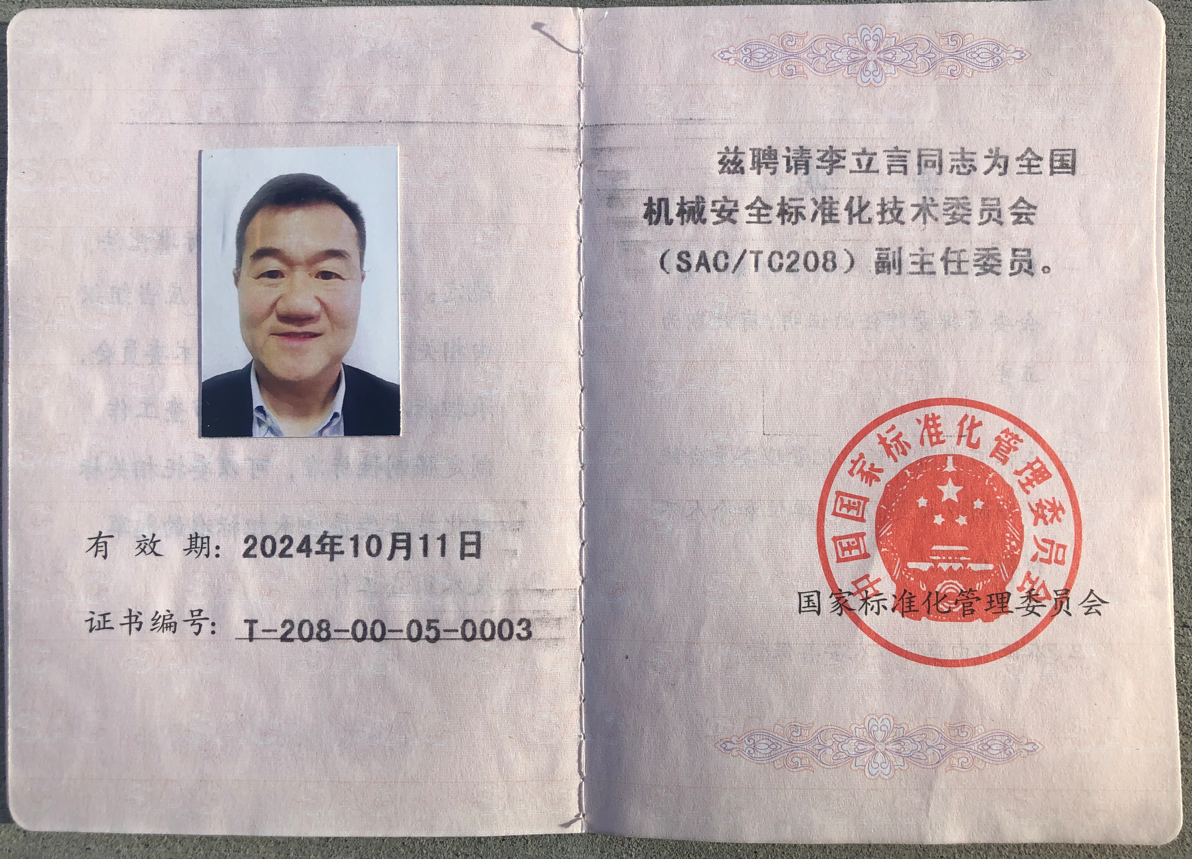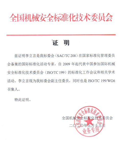 ISO國際標準 (機械安全)TC199/WG-6 Convenor 分組召集人;ISO國際標準 (機器人)TC299/WG-3 工業機器人安全標準專家。