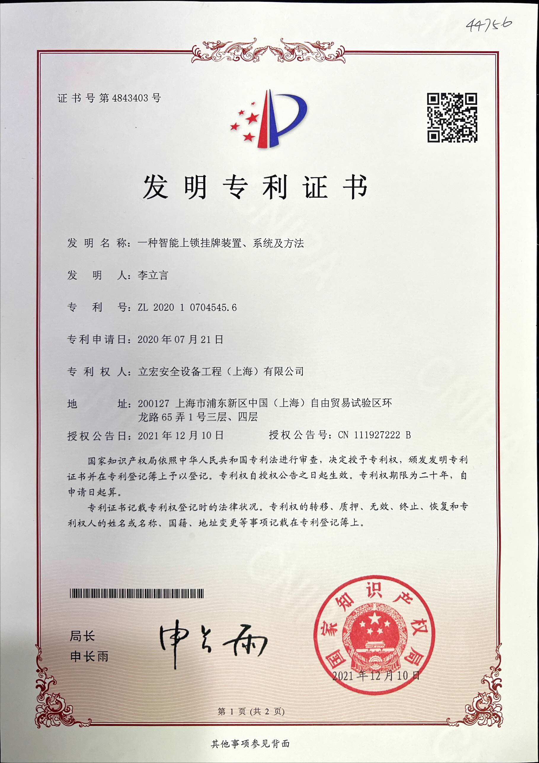 | ▊ | 一種智能上鎖掛牌裝置、系統及方法 | Intelligent locking and tagging device, system and method |